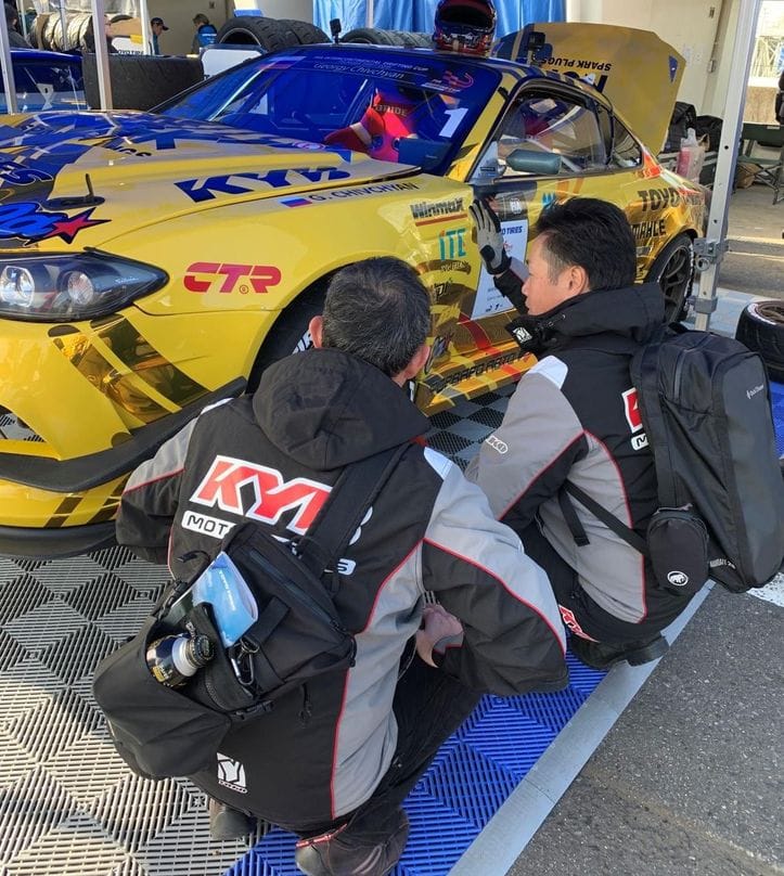 В Японии во время FIA Intercontinental Drifting Cup инженеры KYB встретились с Гочей и механиками команды, обсудили особенности конструкции подвески и рулевого управления и наметили варианты для развития инженерно-технического сотрудничества в будущем.